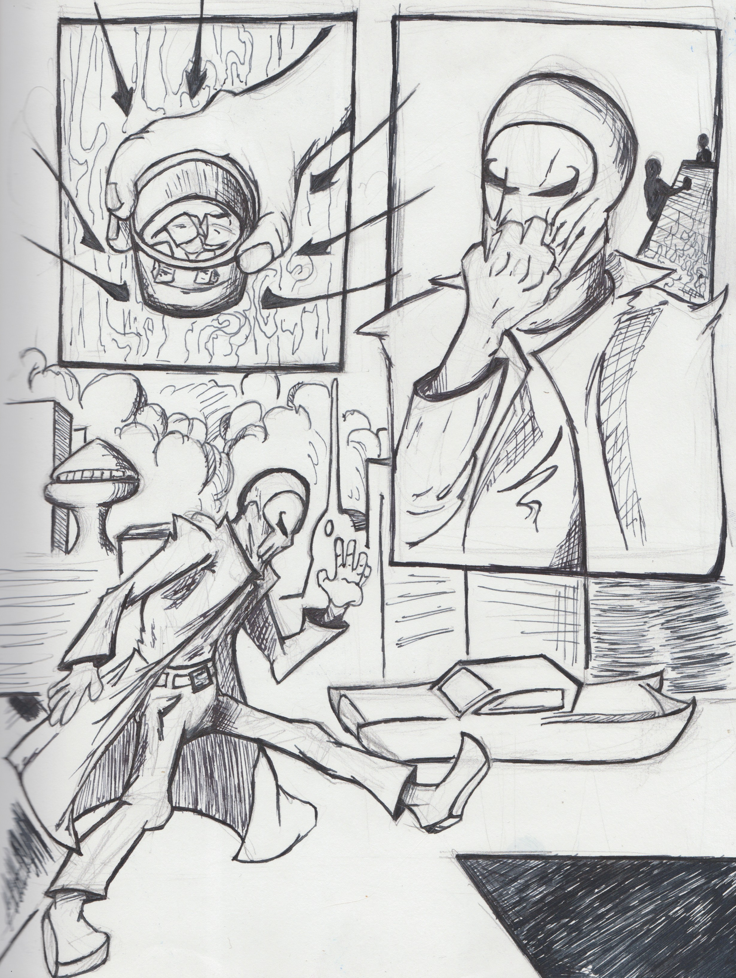 Whatever happens to strike my fancy is what comes next. That being said, the last 4 months have taught me that planning out a few pages in advance isn't a bad thing, so I'm always thinking about that while I draw. The general story is already in my head, and I know where I want it to go, but page to page I draw them a bit like people play jazz. I'm just tryin to riff on my emotions in the moment but still tell a coherent story.
